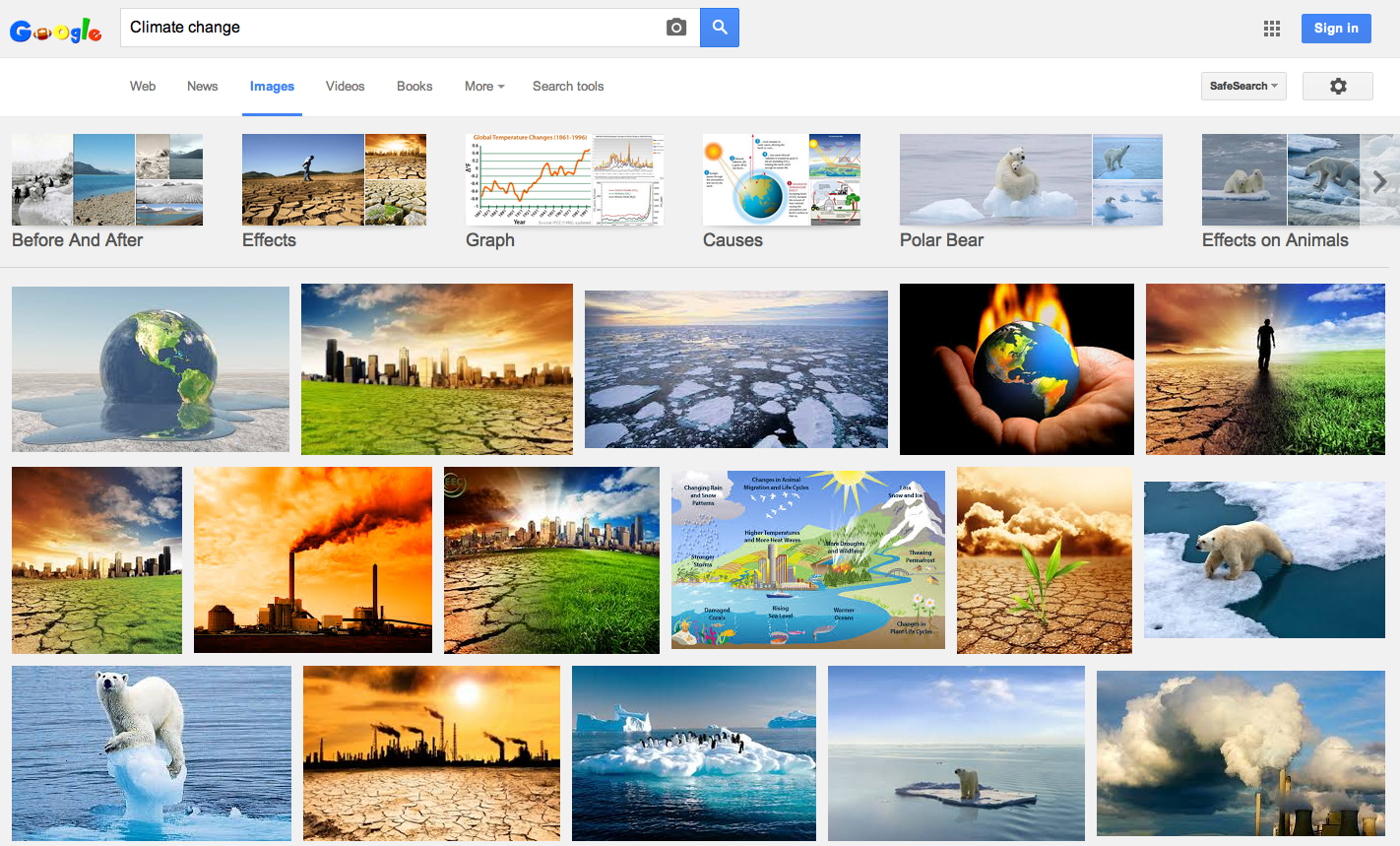 Do an image search of climate change and this is what you see. Why is it that the issue of climate change has been associated with fear rather than hope? Well on first guess the answer would be that fear or negative emotions in general, are better at seeking the attention of the user. Negative emotions trigger a survival instinct at an intrinsic level, which, no doubt, calls for attention, but is it the best way to deal with the issue?